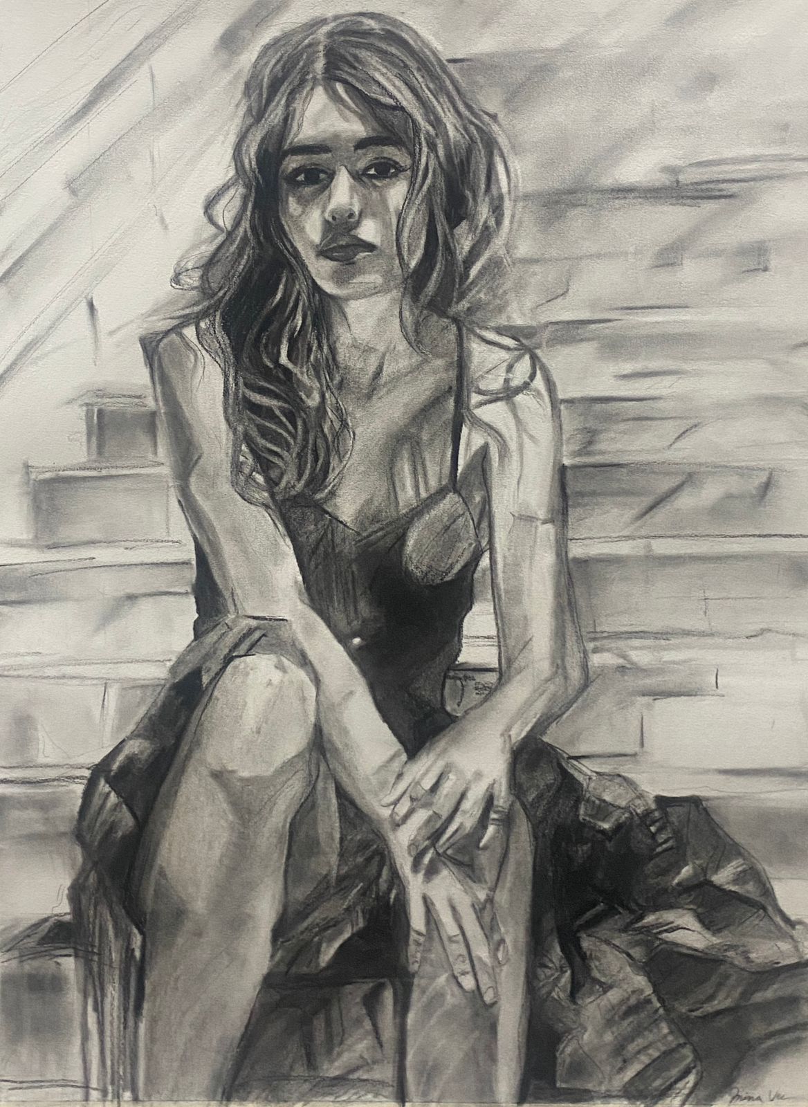 This charcoal piece - “After the Ball” is one such experience for me. The starting idea was simple enough : Modern Cinderella sitting on the stairs of the palace after the ball.